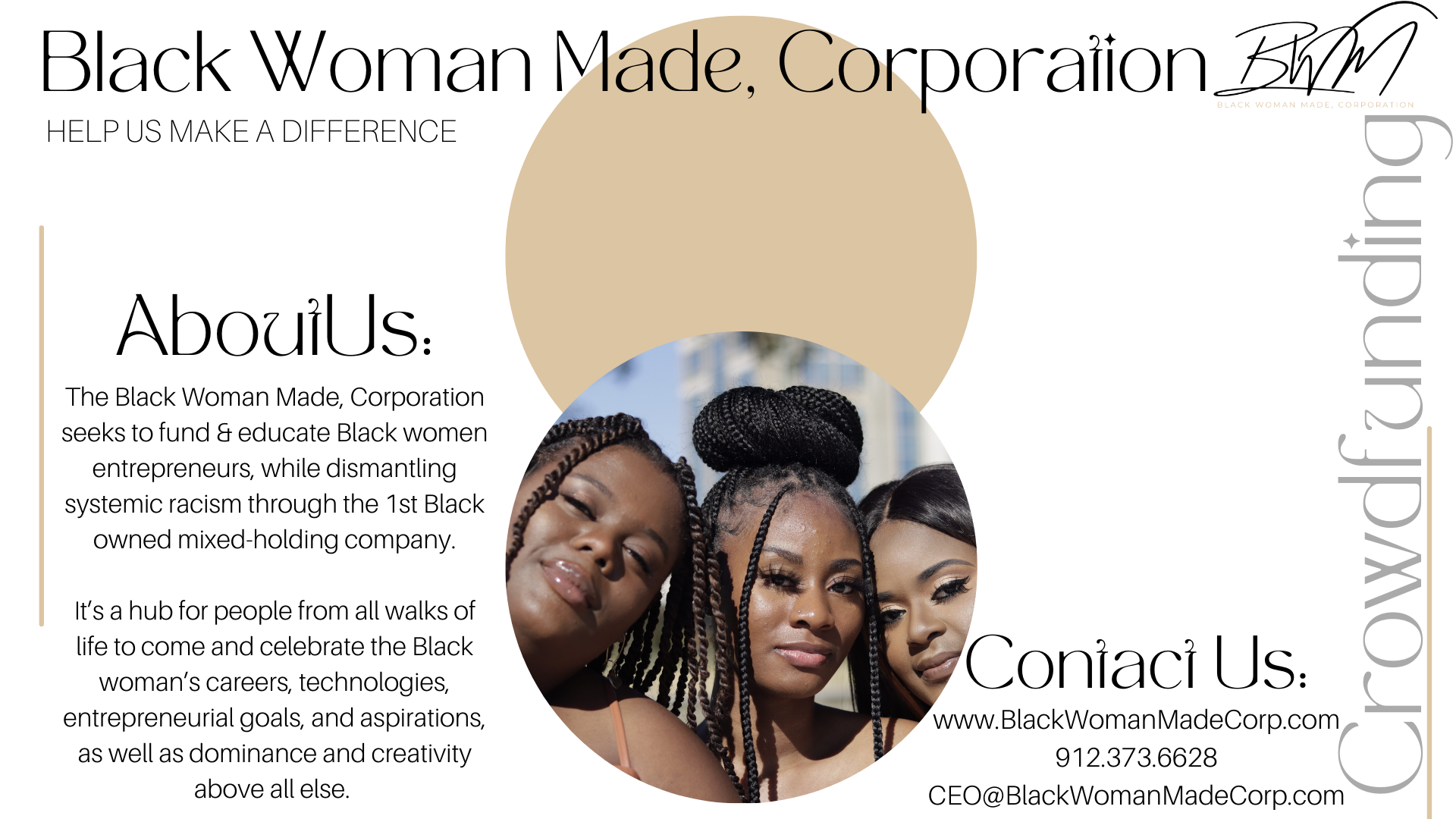 The Black Woman Made, Corporation is an original product stemming from the crave to create a dynamic umbrella company that houses various businesses in differing industries by Black women. It’s a hub for people from all walks of life to come and celebrate the Black woman’s careers, technologies, entrepreneurial goals, and aspirations, as well as dominance and creativity above all else.
